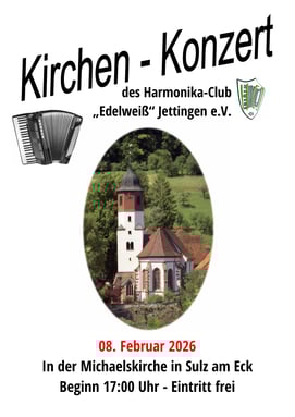 Am 08. Februar 2026 ist es wieder soweit. Wir kommen wieder nach Sulz am Eck in die Michaelskirche. Das Konzert beginnt um 17:00 Uhr.